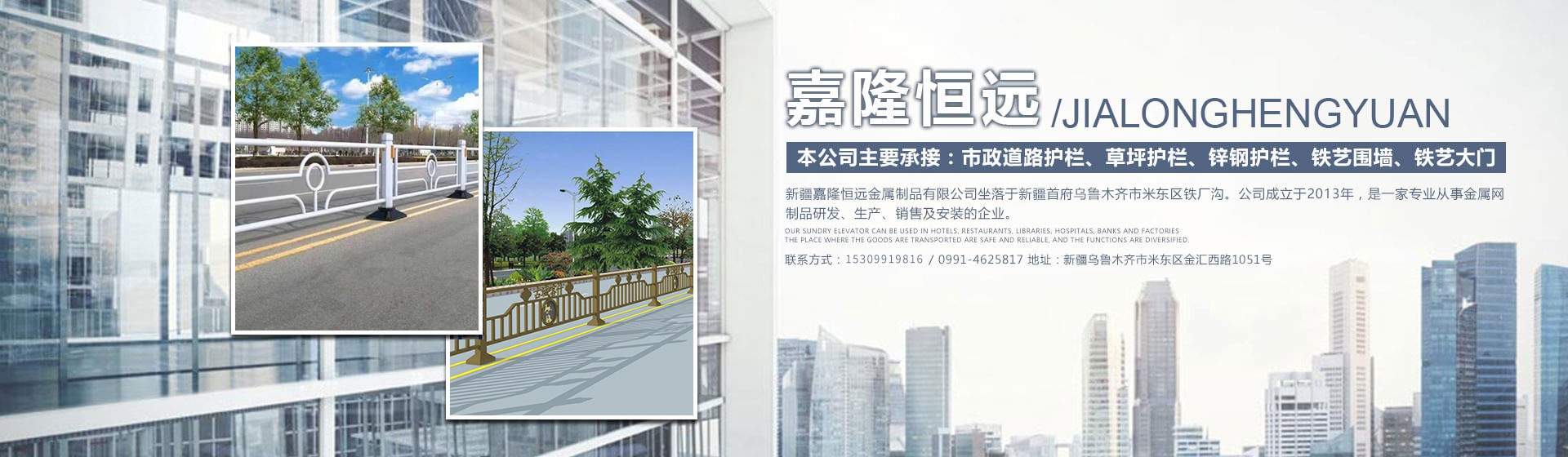 新疆嘉隆恒遠(yuǎn)金屬制品有限公司坐落于新疆首府烏魯木齊市米東區(qū)鐵廠(chǎng)溝。公司成立于2013年,是一家專(zhuān)業(yè)從事金屬網(wǎng)制品研發(fā)、生產(chǎn)、銷(xiāo)售及安裝的企業(yè)。 本公司主要承接 市政道路護(hù)欄、草坪護(hù)欄、鋅鋼護(hù)欄、鐵藝圍墻、鐵藝大門(mén)。 公司購(gòu)進(jìn)一批新的生產(chǎn)設(shè)備,生產(chǎn)能力、廠(chǎng)區(qū)環(huán)境得到大步提升、我公司將以全新的面貌、以更優(yōu)質(zhì)的產(chǎn)品、更高的效力、為你提供更全面的服務(wù)。 公司承諾將以齊全的品種、優(yōu)質(zhì)的產(chǎn)品、良好的服務(wù)、超值的價(jià)位竭誠(chéng)為廣大新老客戶(hù)服務(wù)。 隨著西部大開(kāi)發(fā)的加快,我公司將依托新疆有利的資源,打造出新疆生產(chǎn)規(guī)模大、品種全的生產(chǎn)基地,迎接更美好、更輝煌的明天。 歡迎來(lái)電咨詢(xún),實(shí)地考察,一次合作,終身是友。